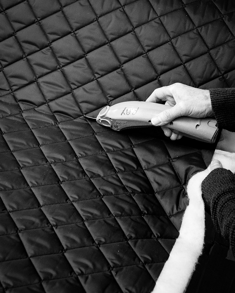 ダイヤモンドキルトステッチは見た目の美しさもさることながら、耐久性を高める役割も担っております。