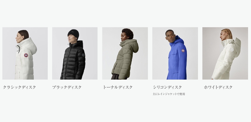 製品の左肩につく「ディスクロゴ」は、CANADA GOOSEが誕生した北極圏からインスピレーションを得ています。赤・白・青の3色から構成され、円形の北極地域を上から見た様子を映しています。